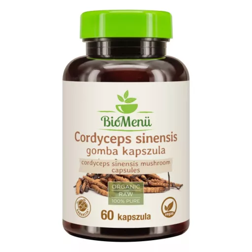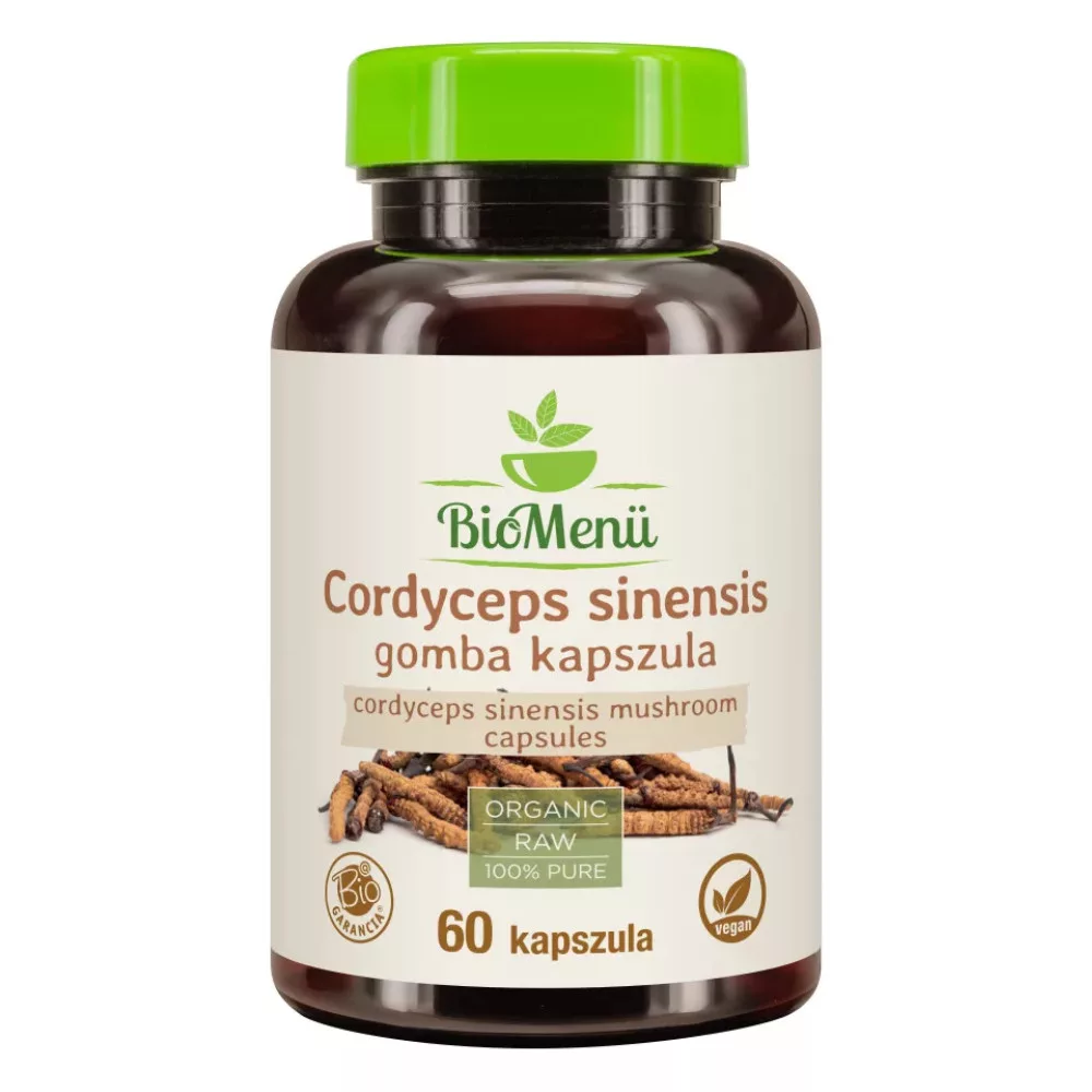 100% bio cordyceps sinensis gomba (kínai hernyógomba); csomósodást gátló anyag: szilícium-dioxid; kapszulahéj: hidroxipropil-metil-cellulóz