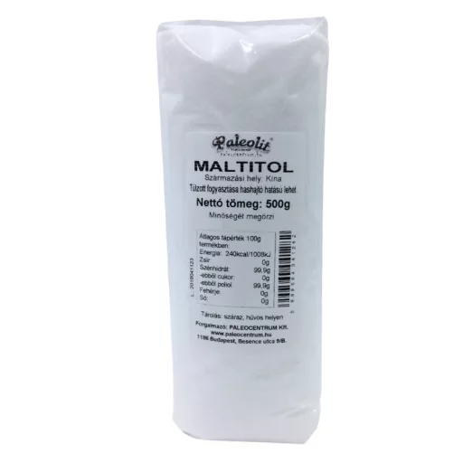 Kukoricakeményítő alapú természetes édesítőszer, melynek édesítő hatása közel azonos a cukoréval (édessége a cukor édességének 60-90%-a), kémiailag a cukoralkoholokhoz tartozik. Kíméli a fogakat, 40%-kal kevesebb a kalóriaértéke, mint a cukornak, (kb. 2,4 kcal/g). Nincs ismert mellékhatása. Lassan szívódik fel, így a vércukorszintet kismértékben emeli, azaz kedvező a glikémiás indexe (GI 20-30). A tiszta maltitol hasznosításához az emberi szervezet nem igényel inzulint. A napi energia, szénhidrátmennyiségbe szintén be kell számolni. Nagy mennyiségben fogyasztva hasmenést, hasfájást és puffadást okozhat. Mivel a levegőből magához vonzza a vizet, gátolja az élelmiszerek kiszáradását.