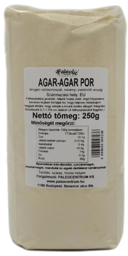 Felhasználási javaslat: Adjunk hozzá vizet, majd folyamatos keverés közben forraljuk fel, hogy teljesen feloldódjon! Hagyjuk kihűlni, hogy elérjük a kívánt zselés állagot! Adagolás: Készítsünk 0,1-1,5%-os oldatot!