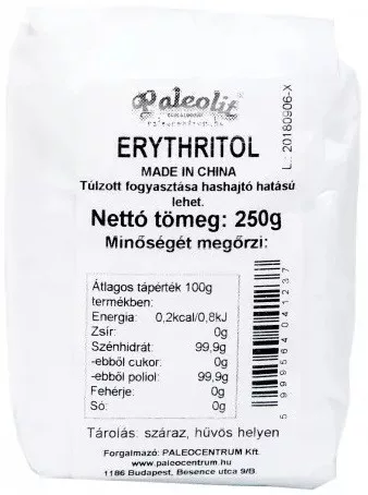 - állatkísérletekben hosszú távú, nagy mennyiségű eritritol bevitele esetén sem mutattak ki káros hatásokat