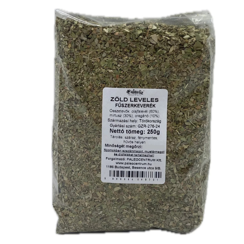 Összetevők: olajfalevél (60%), mirtusz (30%), oregánó (10%).